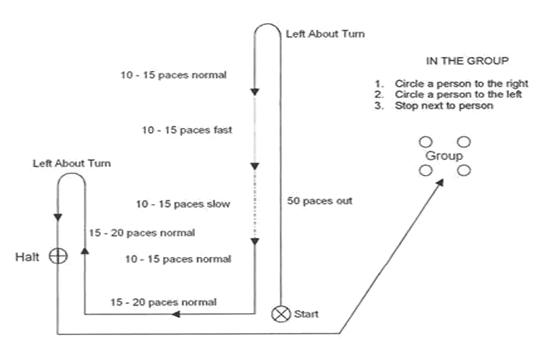 the exercise. Praising the dog is permitted only in the final basic position after leaving the group.